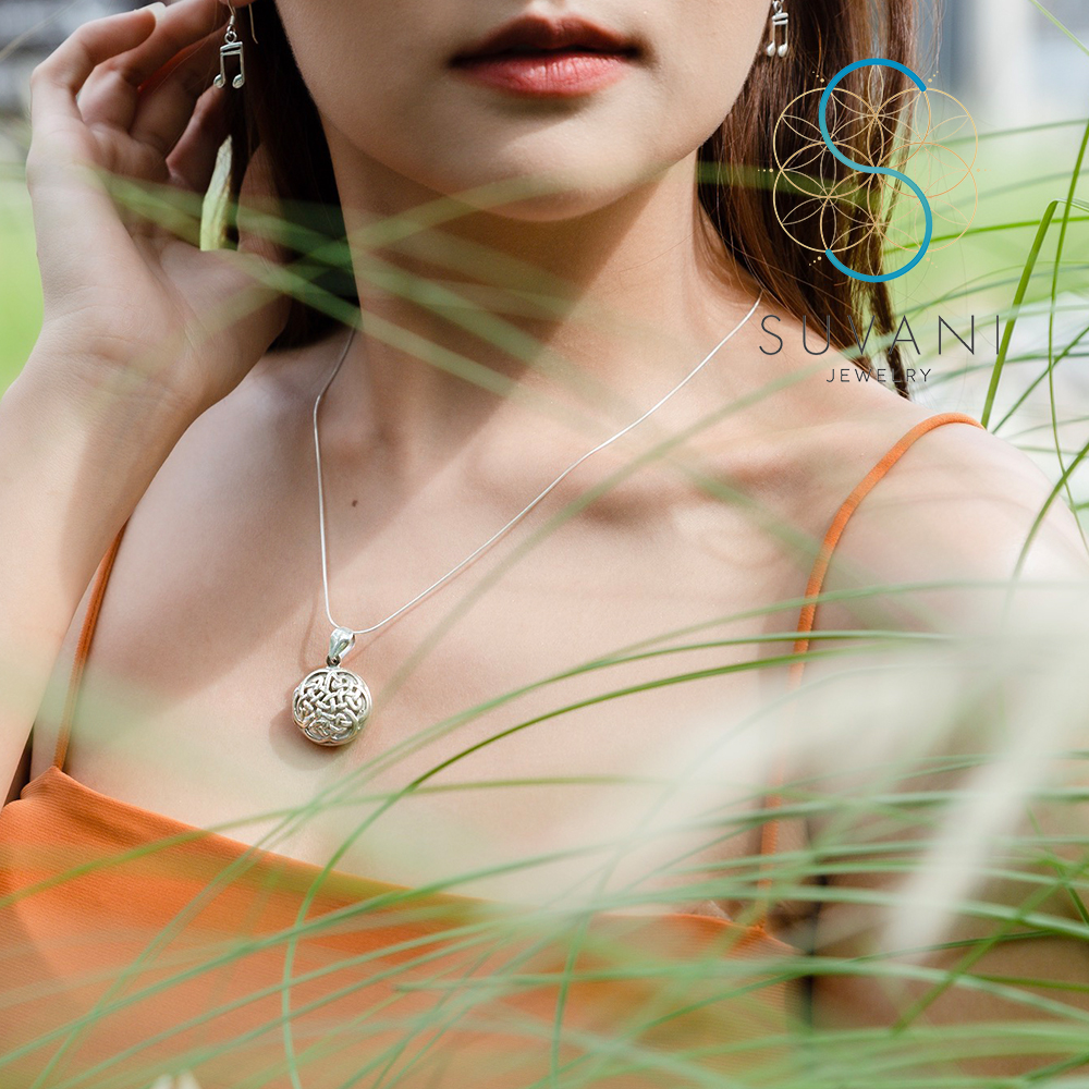 SUVANI เงินแท้ 92.5% จี้ทรงกลม ลายเซลติก จี้แนววินเทจ จี้พร้อมสร้อยคอ เครื่องประดับเงินแท้